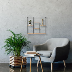 Vous allez craquer pour les lignes épurées de cette étagère filaire carrée. Elle est agrémentée de 5 supports en bois disposés à différents niveaux pour un effet tendance ! Détail : Visserie non incluse